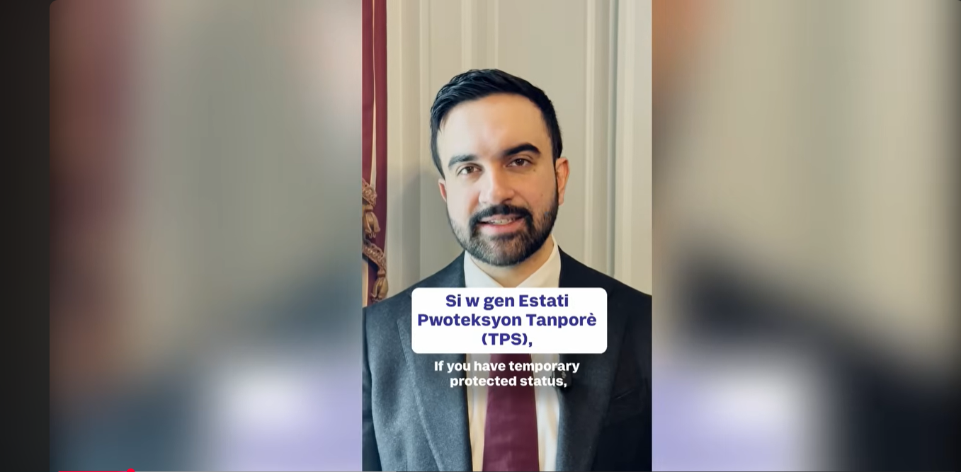 Nouvo majistra New York la Mayor Zohran Kwame Mamdani di li kanpe ak Ayisyen ki gen TPS kap viv nan vil li a.